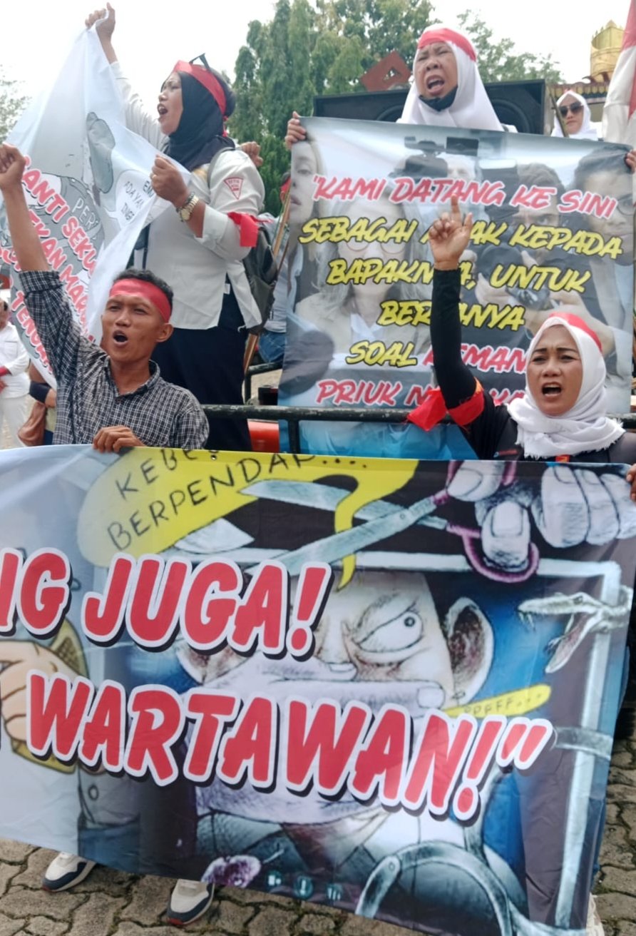 Ratusan jurnalis yang tergabung dalam Forum Wartawan Lintas Media (FWLM) Lampung Tengah menggelar unjuk rasa sebagai bentuk protes sekaligus penyampaian aspirasi kepada para wakil rakyat, pada Senin (29/12/2025).