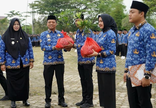 Pemerintah Kabupaten Pringsewu menggelar Apel Perdana, dipimpin Bupati Pringsewu Riyanto Pamungkas sebagai pembina apel, di lapangan pemkab setempat, Jumat (2/1/2026).