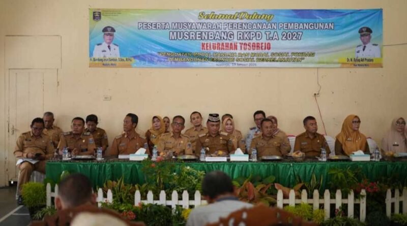 Pemerintah Kota Metro menggelar Musyawarah Perencanaan Pembangunan (Musrenbang) Kelurahan Yosorejo dalam rangka penyusunan Rencana Kerja Pemerintah Daerah (RKPD) Tahun 2027 di Kantor Kelurahan Yosorejo, Kecamatan Metro Timur, Selasa (13/01/2026).