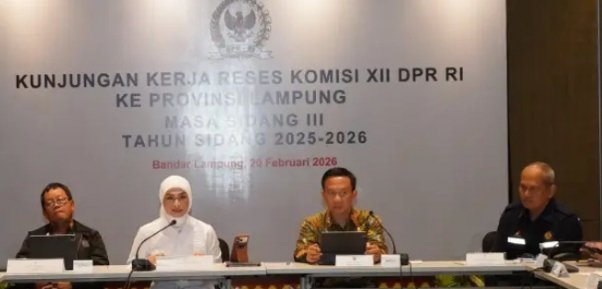 Sekretaris Daerah Provinsi Lampung, Marindo Kurniawan, mewakili Gubernur Lampung mendampingi Komisi XII DPR RI melakukan kunjungan kerja reses untuk pengawasan langsung pengelolaan sektor energi dan lingkungan hidup di Provinsi Lampung, Jumat (20/2/2026). Kegiatan tersebut berlangsung di Hotel Radisson, Bandarlampung dan dihadiri jajaran pemerintah pusat, daerah, serta pelaku industri migas dan energi.