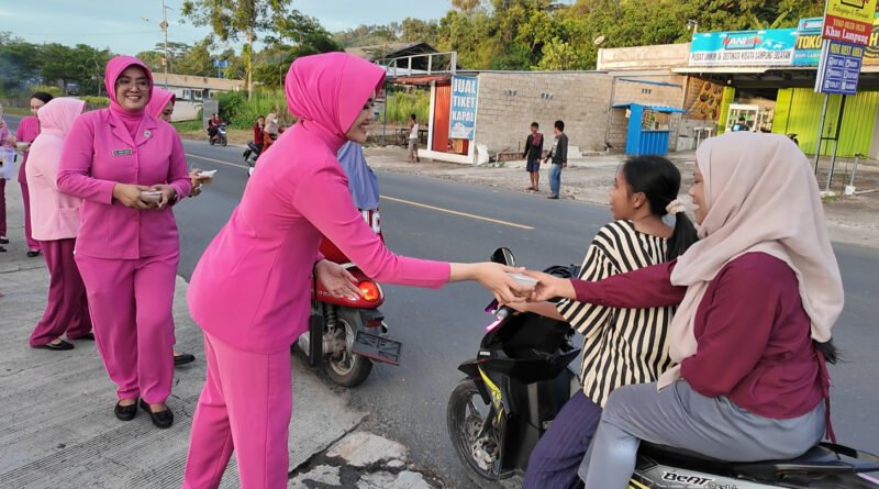 Bhayangkari Cabang Lampung Selatan Bagi Takjil di Pintu Masuk Pelabuhan Bakauheni