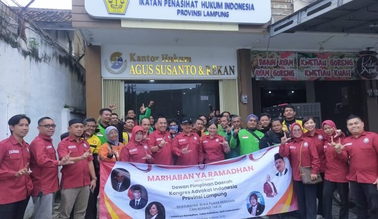 Dipimpin Ketua DPD Kongres Advokat Indonesia Provinsi Lampung Hi. Agus Susanto, SH.MH, jajaran pengurus dan Advokat DPD KAI membagikan paket takjil dan sembako kepada pengguna jalan.