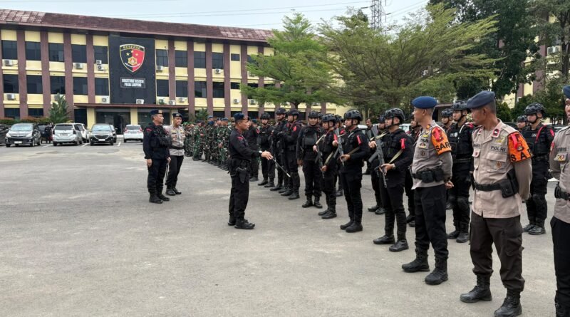 Personel Sat Brimob Polda Lampung melaksanakan apel gelar pasukan operasi kepolisian terpusat “Ketupat Krakatau 2026” di Polda Lampung pada tanggal 12 Maret 2026. Kegiatan ini dilakukan dalam rangka pelayanan perayaan Idul Fitri 1447 H di wilayah hukum Polda Lampung. Apel gelar pasukan ini bertujuan untuk memperkuat pelayanan dan pengamanan selama perayaan Idul Fitri, sehingga masyarakat dapat merayakan hari raya dengan aman dan nyaman.Jum”at (13/3/2026)