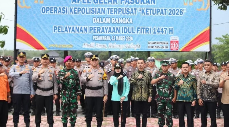 Bupati Pesawaran Hj. Nanda Indira B., S.E., M.M. memimpin Apel Gelar Pasukan Operasi Kepolisian Terpusat “Ketupat Krakatau 2026” dalam rangka pengamanan dan pelayanan perayaan Hari Raya Idul Fitri 1447 Hijriah. Apel tersebut digelar di halaman Mapolres Pesawaran, Kamis (12/3/2026).