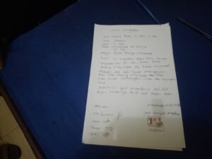 Selanjutnya surat pernyataan di atas meterai yang buat oleh bapak Sulaiman di bacakan oleh ketua BPK di hadapan ratusan masa.