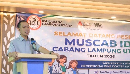 Hal tersebut disampaikan Wakil Bupati Lampung Utara Romli pada saat membuka Musyawarah Cabang (Muscab) Ikatan Dokter Indonesia (IDI) Kabupaten Lampung Utara yang digelar di Aula Serajo Bulan Rumah Sakit Handayani Kotabumi, Sabtu (18/4/2026).