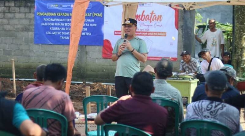 Wali Kota Metro, Bambang Iman Santoso menghadiri pembangunan rumah milik Bapak Rohim di Kelurahan Rejomulyo, Kecamatan Metro Selatan, tepatnya di Jalan Rajawali RT 18 RW 05.