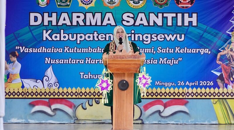 Wakil Bupati Pringsewu Umi Laila, S.Ag., menghadiri kegiatan Dharma Santih dalam rangka Hari Raya Suci Nyepi Tahun Caka 1948/2026 yang mengusung tema “Vasudhaiva Kutumbakam: Satu Bumi, Satu Keluarga, Nusantara Harmoni, Indonesia Maju”. Kegiatan tersebut dilaksanakan di Pekon Panggungrejo, Kecamatan Sukoharjo, Minggu (26/04/2026).