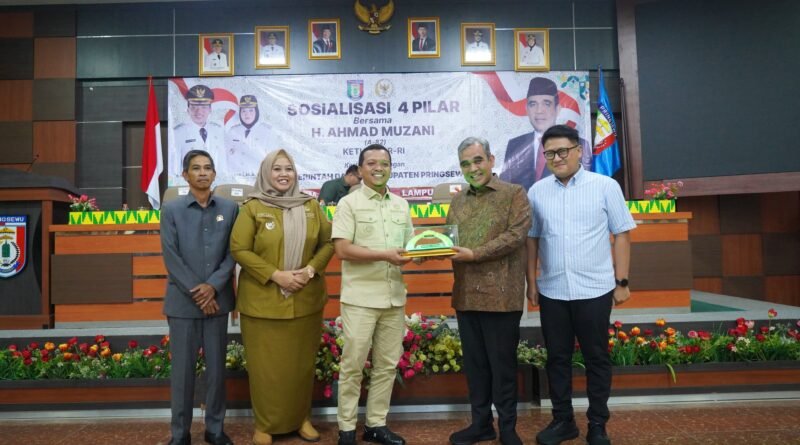 Ketua MPR RI Ahmad Muzani melakukan kunjungan kerja ke Kabupaten Pringsewu Provinsi Lampung. Ketua MPR RI didampingi Ketua DPRD Provinsi Lampung Ahmad Giri Akbar beserta sejumlah anggota DPRD Provinsi Lampung disambut dan diterima oleh Bupati Pringsewu Riyanto Pamungkas dan Wakil Bupati Pringsewu Umi Laila, Ketua DPRD Pringsewu Suherman beserta jajaran pemerintah daerah, DPRD dan forkopimda Kabupaten Pringsewu. Pada kesempatan tersebut, juga dilakukan tukar-menukar cinderamata antara Ketua MPR RI dan Bupati Pringsewu, serta Sosialisasi Empat Pilar Kebangsaan di Aula Utama Kantor Bupati Pringsewu, Selasa (28/4/2026).