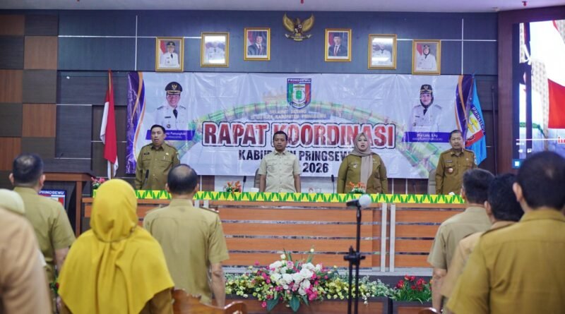 Pemerintah Kabupaten Pringsewu menggelar Rapat Koordinasi Kabupaten Pringsewu Bulan April 2026 di Aula Utama Kantor Bupati Pringsewu, Selasa (28/04/2026).